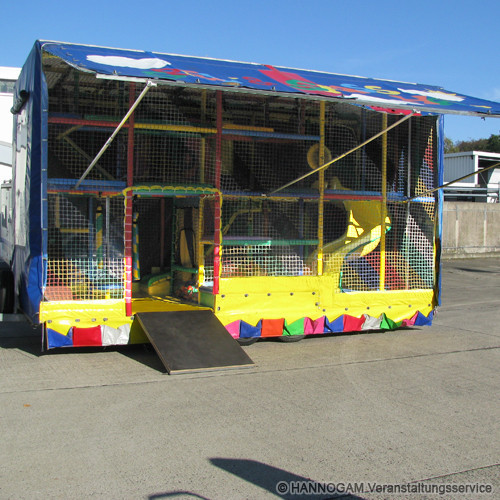 Das Spiel- und Spaßhaus ist ein mobiles Kletterlabyrinth für Kinder mit vielen Kreiseln, Boxsäcken, Walzen, zwei Rutschen, einer Feuerwehrstange und einem Bällebad. Die Kinder können auf vier Ebenen durch das Spielhaus klettern, rutschen oder im Bällebad mit tausenden von Bällen toben. Durch die umlaufende Plane und das große Vordach können sich Ihre Gäste bei jedem Wetter in dem Spielmobil wettergeschützt aufhalten. Durch die integrierte Innenbeleuchtung kann das Spaßmobil auch hervorragend im Winter gemietet werden. Der Hannogam Eventservice ist eine bundesweite Vermietung für Spiel- und Spaßhäuser. Wir haben jeweils eine Spiel- und Spaßhaus Vermietung in Hannover, Bremen und Hamburg. Gerne können sie unser Spielhaus auch zu ihrem Firmenjubiläum, Stadtfest, Gemeindefest oder Kinderfest in Neustadt, Papenburg, Wilhelmshaven, Husum oder auf Amrum mieten. Ebenso unterbreiten wir ihnen aber auch ein Angebot für Ihre Veranstaltung wie Familienfeier, Verkaufsoffener Sonntag, Tag der offenen Tür oder Stadteilfest in Norderstedt, Henstedt-Ulzburg, Bargteheide, Stade, Magdeburg oder Göttingen.
