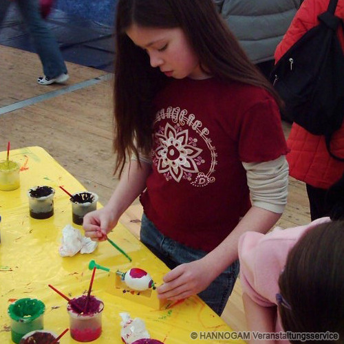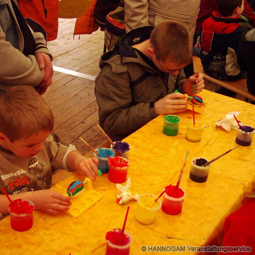 Ein Animateur bemalt zusammen mit Ihren Gästen weiße Ostereier aus Kunststoff, die anschließend von den Kindern mit nach Hause genommen werden können.