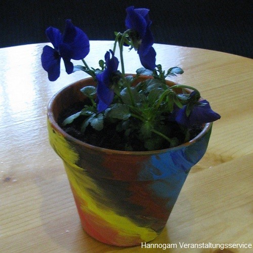 Eine unserer motivierten Animateurinnen bemalt mit Ihren kleinen Gästen Tontöpfe, die anschließend gemeinsam mit Blumen bepflanzt werden. Wir bringen zu dieser Aktion 200 Tontöpfe und 200 Pflanzen mit. Diese Aktion eignet sich besonders gut für eine Indoorveranstaltung bei schlechtem Wetter und bindet die Kinder für eine lange Zeit.