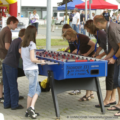 Tischkicker XXL sind normale Kickertische in Überlänge für acht Kickerprofis. Die Tischkicker XXL sind ein Publikumsmagnet und werden gerade zur Fußball Europameisterschaft und zur Fussball Weltmeisterschaft sehr häufig gemietet. Die Kickertische XXL sind immer sehr gut von den Gästen der Veranstaltung umlagert und bespaßen jung und alt gleichermaßen. Wir haben eine Vermietung für Tischkicker XXL in Hamburg, Sie können die Kickertische aber auch ab unserem Lager in Hannover leihen oder ab Bremen mieten. Unsere Attraktionen vermieten wir bundesweit. Wir liefern somit auch nach Paderborn, Göttingen, Magdeburg, Bielefeld und Kiel. Gerne können wir Ihnen für unsere Krökeltische ein Angebot erstellen. Den Krökeltisch können Sie auf Ihrem Stadtfest, der Firmenfeier, dem Public Viewing oder einem Straßenfest gut mit anderen Fußballmodulen wie einem Riesenkicker XXL auch Human Table Soccer genannt, einem Fußball Rodeo, einer Radarmessanlage zum ermitteln Ihrer Schußgeschwindigkeit oder einem Fußball Billard kombinieren.