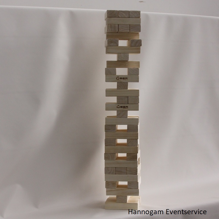 Der Stapelturm XXL ist ein riesen Wackelturm der aus 56 Holzblöcken besteht. Zu Beginn des Spiels werden die 56 Holzblöcke in 19 Schichten zu einem 90cm hohen Turm aufgestapelt. Jetzt wird immer ein Holzblock mit nur einer Hand aus dem Turm gezogen und oben wieder angefügt. Ziel ist es einen möglichst hohen Turm zu bauen ohne das dieser zusammenfällt. Verloren hat der Spieler bei dem der Stapelturm XXL einstürzt.