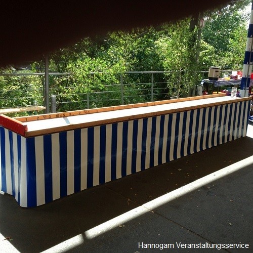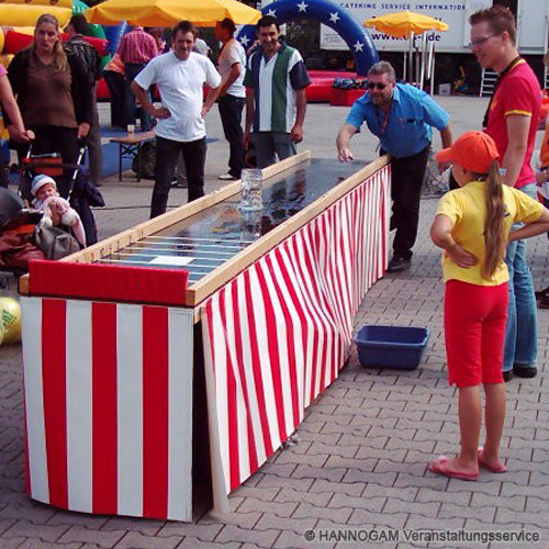 Bei diesem Geschicklichkeitsspiel muss Groß oder Klein mit einem gefüllten Maßkrug möglichst genau in Zahlenfelder auf der anderen Seite des Spielfeldes treffen. Platzbedarf ca. 6,50 x 1,50 m.