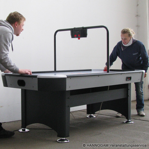 An diesem Air-Hockey können 2 Personen gegeneinander spielen.