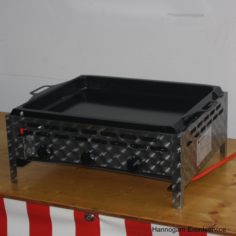 Dieser 3 flammige Gasgrill hat eine 56 x 46 cm große Frittierpfanne