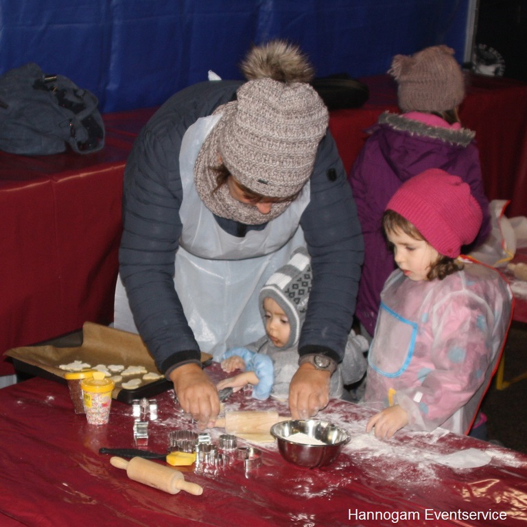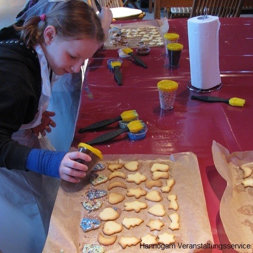 Ihre kleinen Gäste können zusammen mit unseren zwei Betreuerinnen Kekse formen, dekorieren und backen. Wir sorgen für einen abwaschbaren Bodenbelag, bringen das benötigte Verbrauchsmaterial, Tische und Bänke sowie ein Waschbecken und Backöfen mit. Sollte Ihre Veranstaltung im Freien stattfinden, können Sie von uns auch einen Pavillon bekommen.