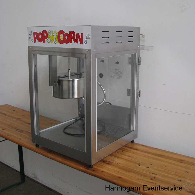 Heißes, knuspriges Popcorn wird eine begehrte Leckerei auf Ihrer Veranstaltung sein, die von Jung und Alt gleichermaßen geschätzt wird. Es handelt sich hierbei um eine Industriemaschine, die ca. 120 kleine Portionen Popcorn pro Stunde bereiten kann.