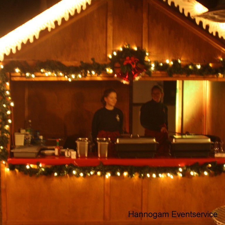 Wir kommen mit unserem "Mobilen Weihnachtsmarkt" bundesweit zu Ihnen. Wir bauen rechtzeitig vor dem Start Ihrer Firmenfeier auf Ihrem Firmengelände auf, feiern zusammen mit Ihnen und bauen im direkten Anschluss wieder ab. Sie erhalten alles aus einer Hand ohne das Sie selber groß organiesieren müssen. Die größe des Weihnachtsmarktes richtet sich nach der Teilnehmerzahl und den örtlichen Gegebenheiten. Für eine Veranstaltung mit Mindestteilnehmerzahl von 100 Personen können wir zum Beispiel drei Verkaufshäuser für die Ausgabe von Grillgut, Salaten, Flammkuchen, kalten und warmen Getränken, Crepes, Waffeln und gebrannten Mandeln mitbringen. Ebenfalls beinhaltet unser all inclusive Angebot Faltpavillons zum überdachen von Festzeltgarnituren und Stehtischen, Beleuchtung zum Beispiel durch Lichterketten, Heizstrahler, Feuerkörbe, Hintergrundmusik und natürlich weihnachtliche Dekoration. Gerne können wir unser Angebot aber auch Ihren Wünschen anpassen.