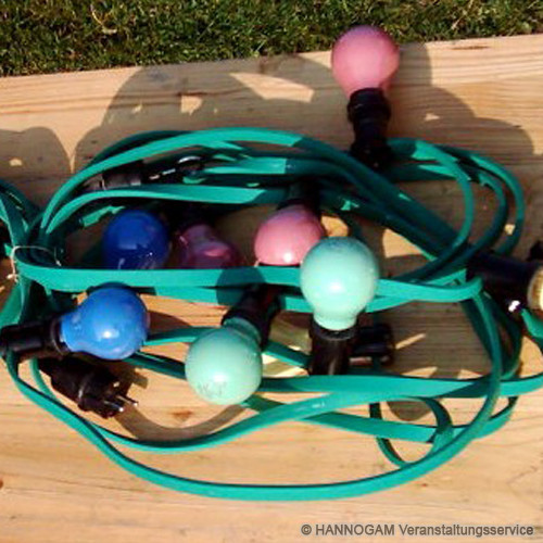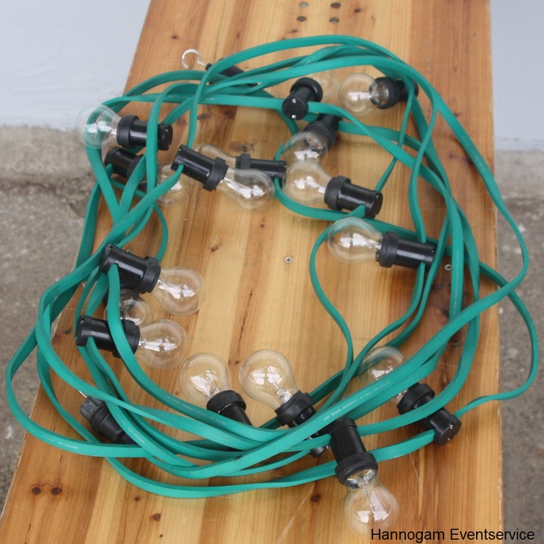 Durch die Lichterketten wird Ihre Veranstaltung erst ins rechte Licht gerückt. Jede Lichterkette hat eine Länge von 15 m mit 16 Lampen.